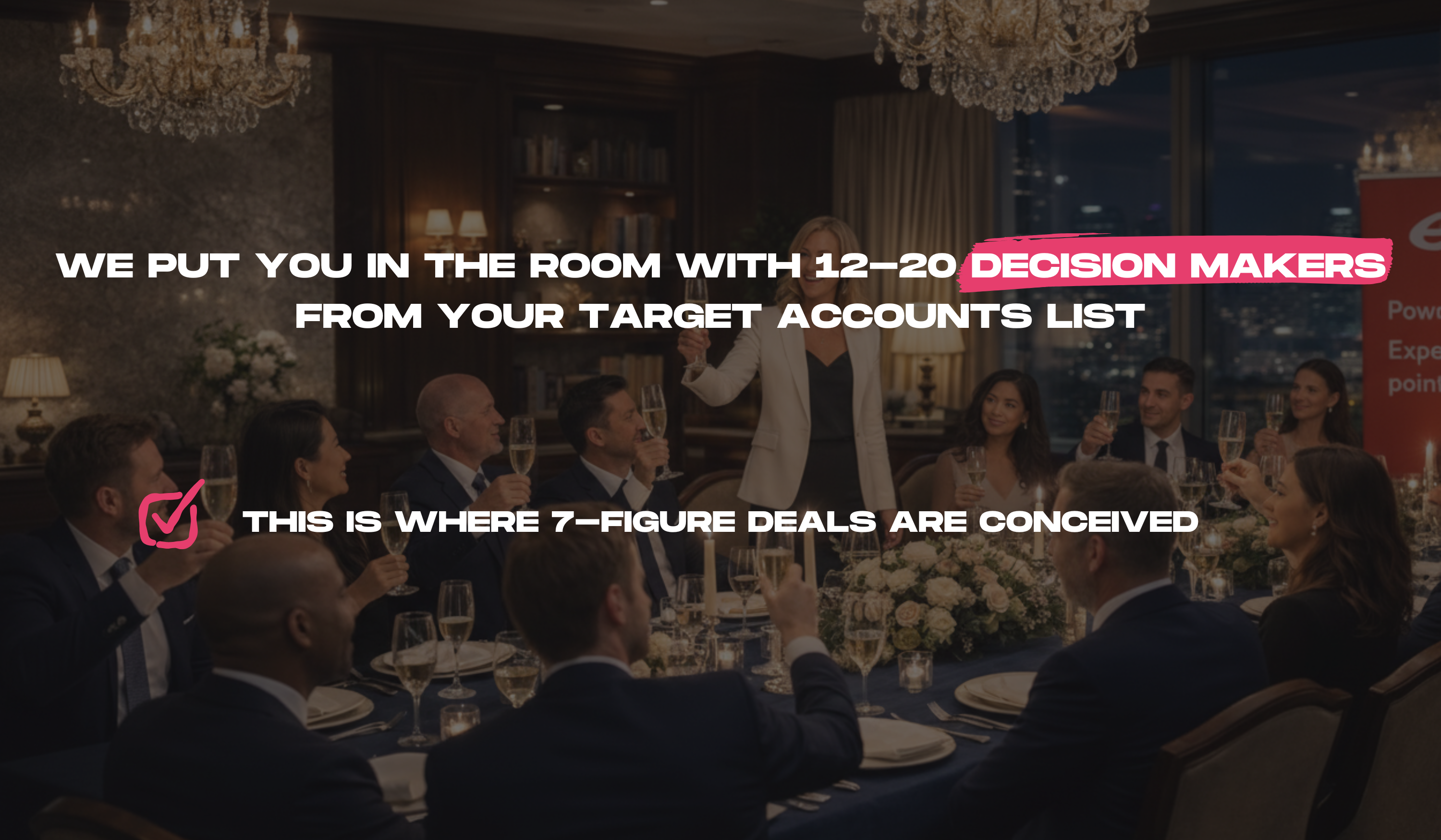 The event is just the start. We provide attendee intel, warm intro frameworks, and 'next step' offers to convert conversations into pipeline.